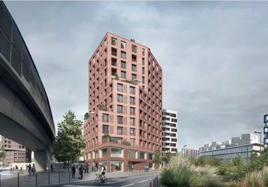 - Un premier lot de 55 logements locatifs sociaux et 1 000 m² de bureaux. Il s’agit d’un R+12 de 6 700 m².
