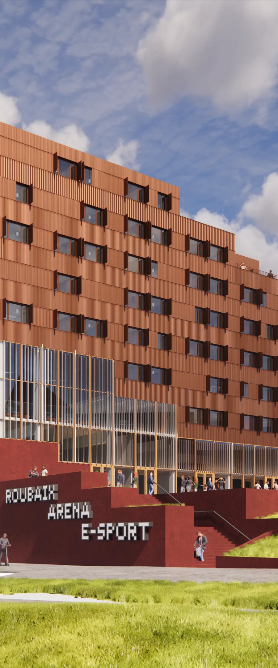 - Programmation mixte Centre E-Sport composé d’une arena, d’espaces dédiés aux jeux vidéos, d’un centre de formation et d’une résidence étudiante de 278 logements