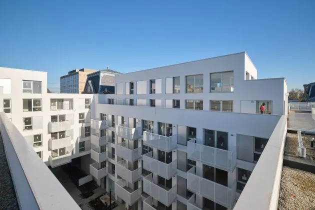 Pour gagner de la surface sur les ailes historiques, tout en préservant la morphologie de la façade principale, il a été prévu une surélévation de deux étages en front de rue. La façade hitorique a été conservée. A l’issue des travaux, le projet réunit sur presque 25 000 m², 175 logements
